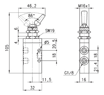 Функция = 3 линии / 2 позиции, нормально закрытый, нормально открытый